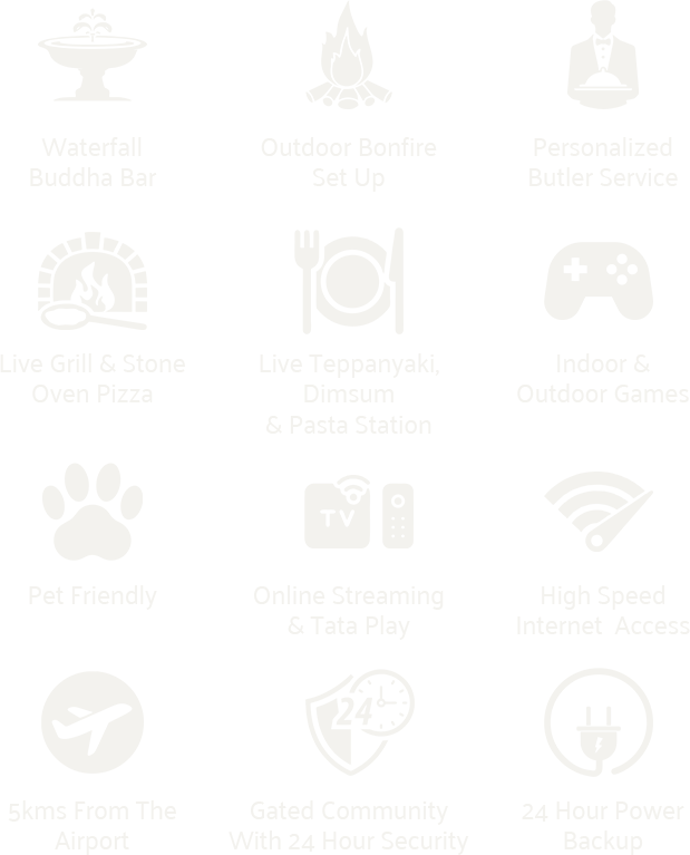 Start your mornings with complimentary breakfast crafted from fresh, homegrown produce. Step outdoors to discover a Buddha Bar facing an extravagant waterfall, a cozy bonfire setup, and a spacious lawn ideal for cricket, football, badminton, yoga, or peaceful picnics. Twin Palms proudly embraces an in-house organic farm, ensuring every meal is part of a distinctive farm-to-table experience — fresh, flavorful, and thoughtfully sourced.